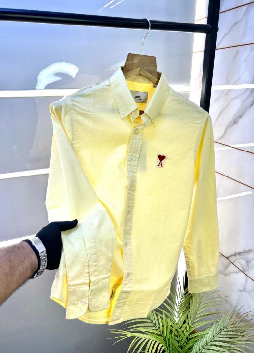 Home Shirts Ami Yellow Embroidery Logo Oxford Lycra Premium Shirt F2770-YE