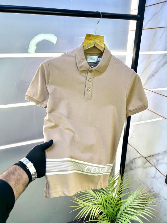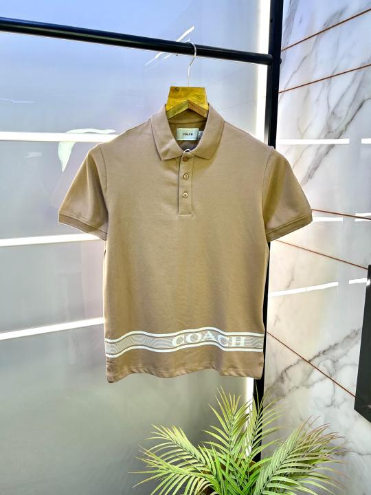 Home T-Shirts Coac h Brown Monogram Polo Premium Collar Neck T-shirt F2700-BR