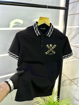 Balmai n Paris Logo Imported Black Collar Neck Premium T-shirt F2831-BL