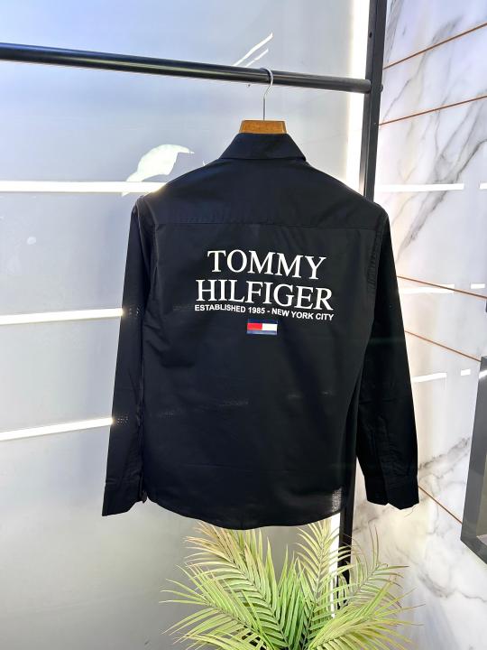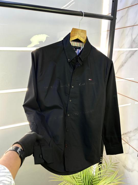 Home Shirts Tommy_Hilfiger Back Printed Black Oxford Lycra Premium Shirts F2577-BL